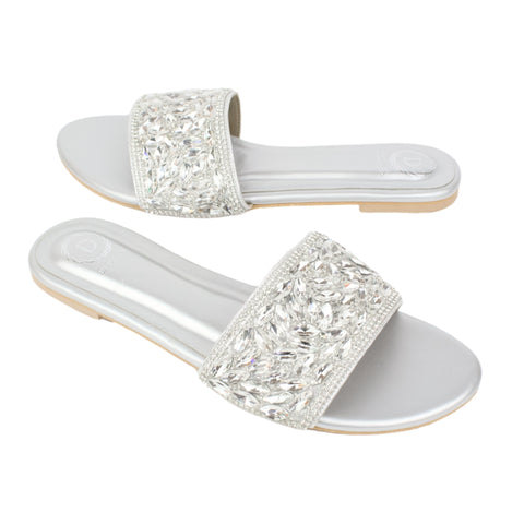 Silver Heel Crystal Encrusted Slip-On Sandals | S345H-S