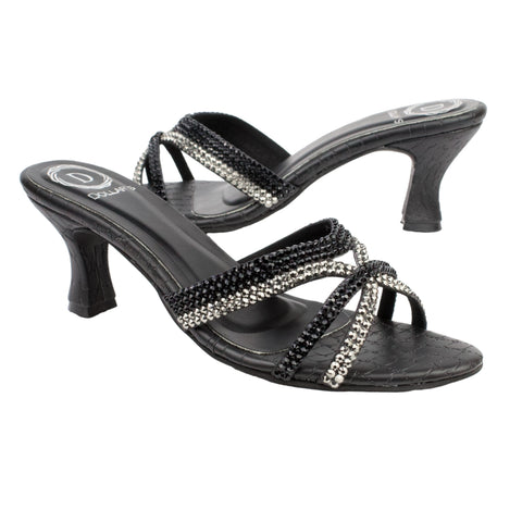 Black Heel Cross Design Slip-On Sandals | S355H-B