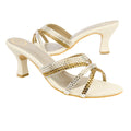 Cream 3in Flared Heel Knot Slip-On Sandals | S248H-C Dhs. 160.00