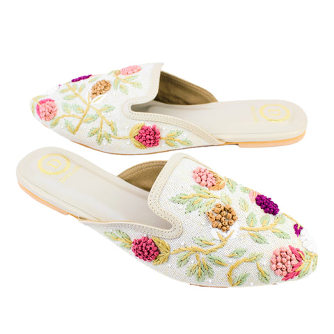 Cream Flat Artisan-Made Slippers | S324F-C