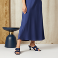 More In Navy Blue 3in Flared Heel Artisan-Made Sandals | S156H-NVY