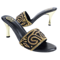 More In Edgy Black Gold Pencil Heel Sandals
