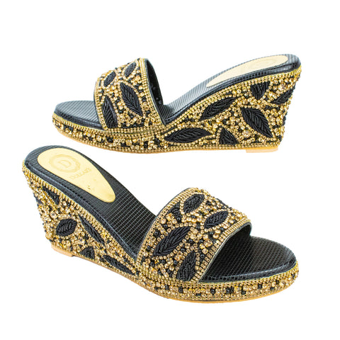 More In Handcrafted Black Elegant Wedge Flat Sandals
