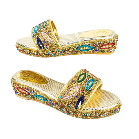More In Handcrafted Gold Multicolour Wedge Sandals