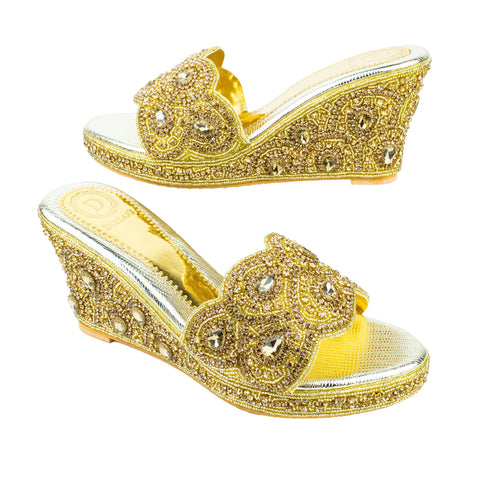 Handcrafted Gold Wedge Sandals