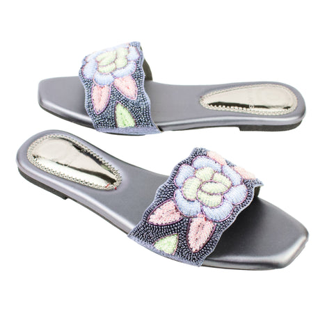 Dollars Women’s Handcrafted Flat Banto Slippers – Grey
