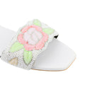 White 2in Sculpted Block Heel Floral Pattern Mule Sandals | S311H-W