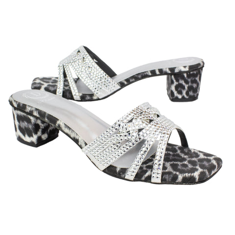 Salwa Feminine-chic Glitter Silver Block Heel Sandals