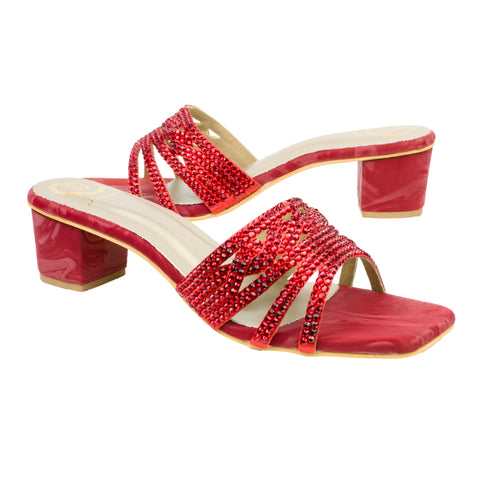 Red 2in Block Heel Handcrafted Sandals | S84H-RED