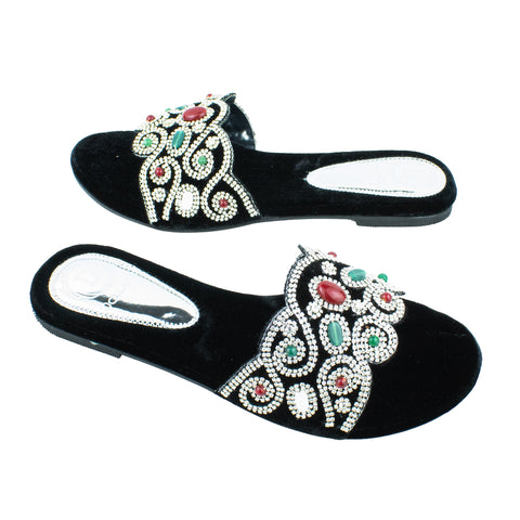 Exquisite and shimmering, these crystal embellished elegant flat sandals are handcrafted for a special, one-of-a-kind effect. Perfect for any occasion, their opulent feel brings a luxurious touch to your ensemble.