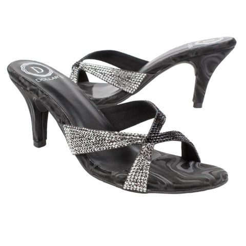 Black 3in Flared Heel Rhinestone Mule Sandals | S141H-B