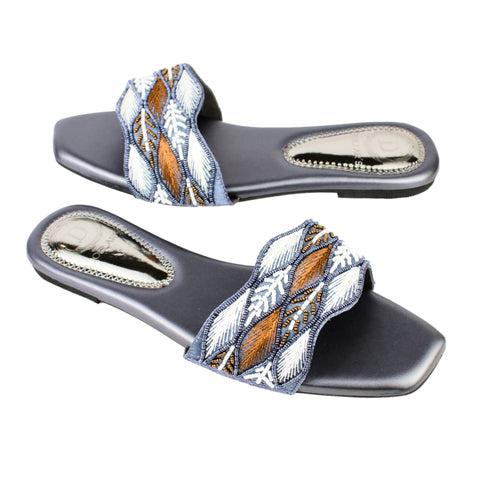 Dollars Women’s Handcrafted Flat Banto Slippers – Grey