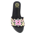 Black 2in Sculpted Block Heel Floral Pattern Mule Sandals | S311H-B