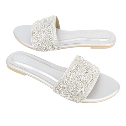 Silver Flat Silk Design Slippers | S261F-S Dhs. 120.00
