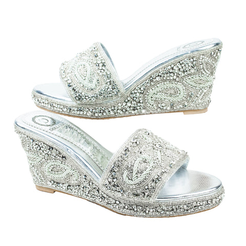 Silver Crystal Embellished Elegant Heel sandals Handcrafted Wedge