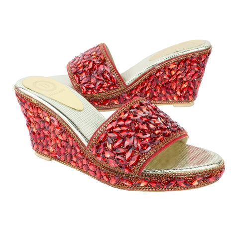 Women Handcrafted Red Wedge Slippers