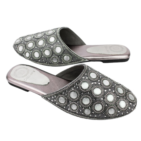 Dollars Women’s Handcrafted Flat Banto Slippers – Grey