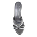 Grey 3in Flared Heel Rhinestone Mule Sandals | S141H-GR