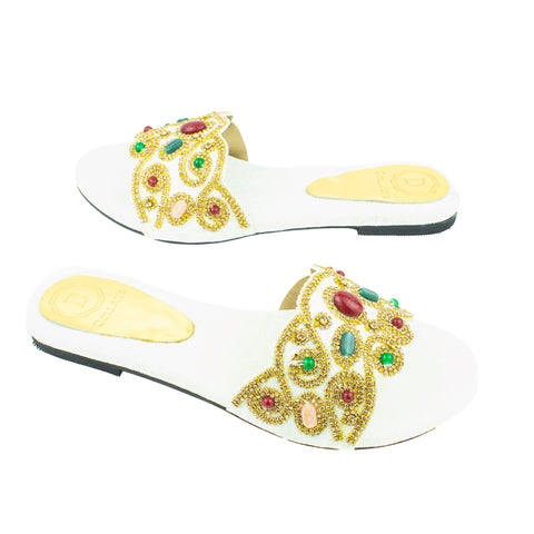 Exquisite and shimmering, these crystal embellished elegant flat sandals are handcrafted for a special, one-of-a-kind effect. Perfect for any occasion, their opulent feel brings a luxurious touch to your ensemble.