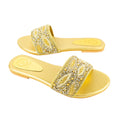 Exquisite and shimmering, these crystal embellished elegant flat sandals are handcrafted for a special, one-of-a-kind effect. Perfect for any occasion, their opulent feel brings a luxurious touch to your ensemble.