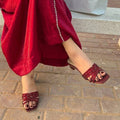 More In Salwa Luxurious Maroon Block Heel Sandals