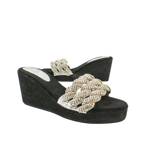 Silver Crystal Embellished Elegant Heel sandals Handcrafted Wedge