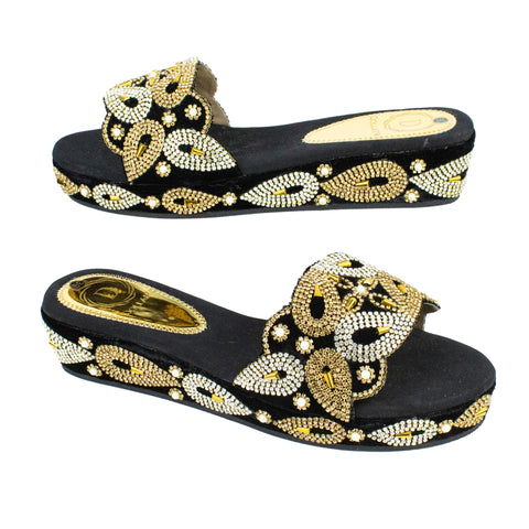 Silver Gold Crystal Embellished Elegant Heel sandals Handcrafted Wedge